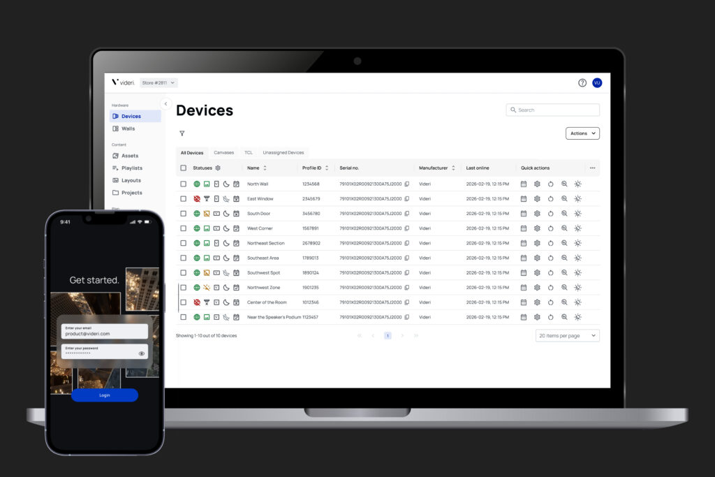 Videri builds and maintains the entire playback stack—our Android-based playback engine, Portal3 CMS, MDM, and orchestration layer—so everything works together by design. No third-party players. No compatibility guesswork. Just seamless, plug-and-play reliability